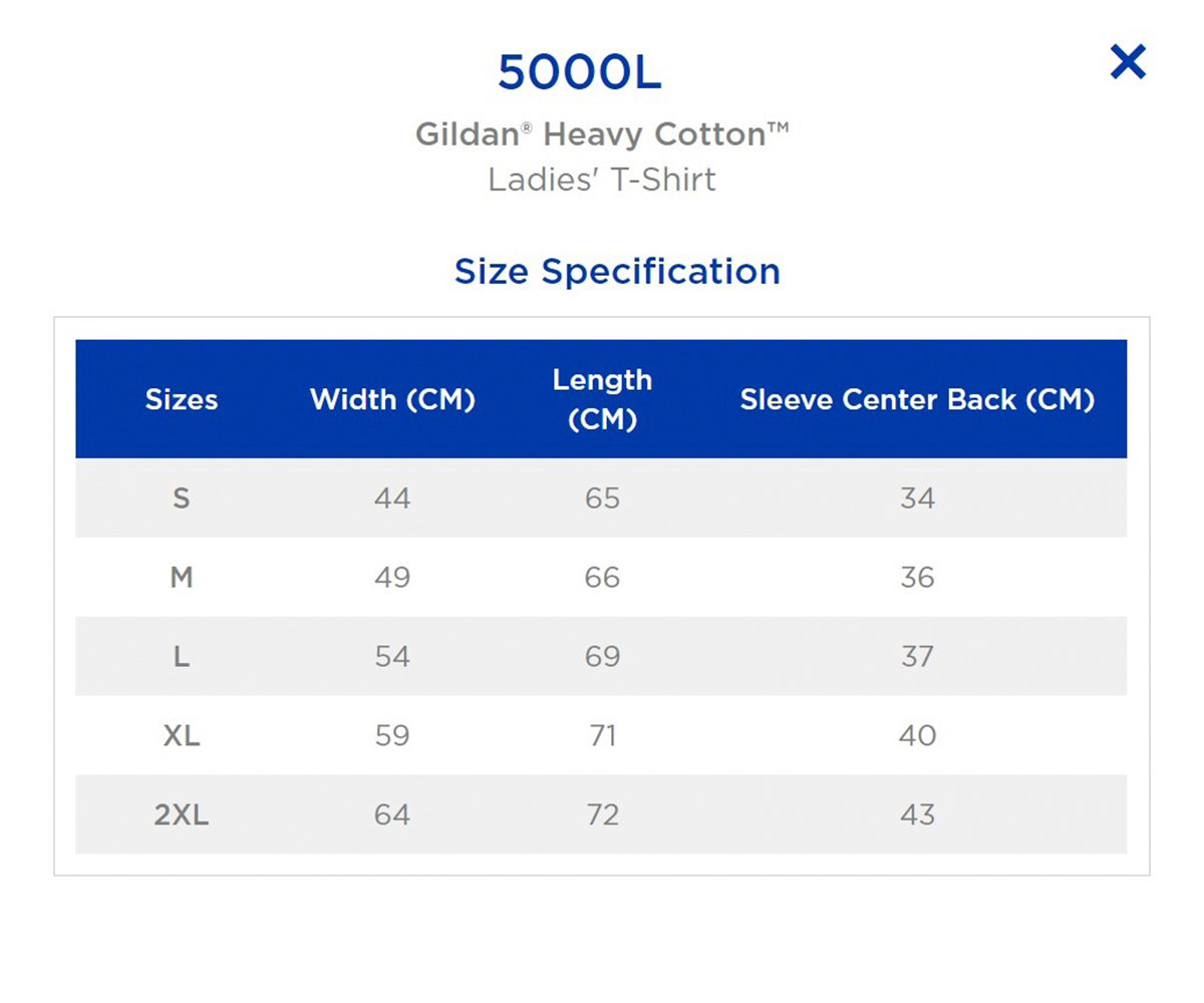 Gildan 5000L Heavy Cotton, 100% Cotton, S / M / L / XL / 2XL